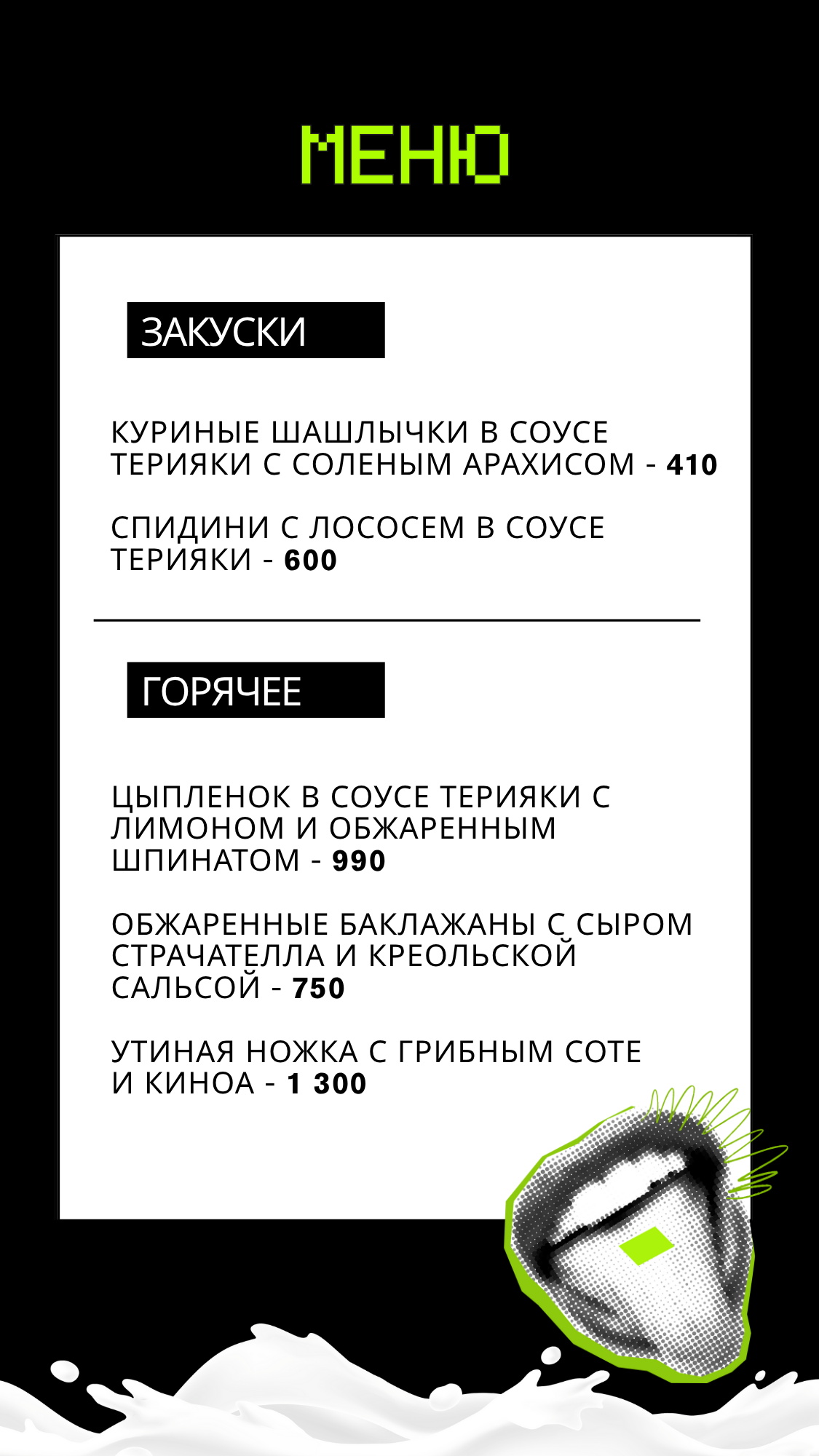 МЕНЮ ПРЕДЗАКАЗА